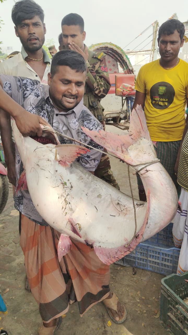 দৌলতদিয়ার ৫নম্বর ফেরি ঘাট এলাকার চান্দু মোল্লা মৎস্য আড়তের সত্ত্বাধিকারী মাছ ব্যবসায়ী চান্দু মোল্লা বলেন, সকালে বেচাকেনা শেষ করে বাড়িতে অবস্থান করছিলাম বড় এক পাঙ্গাশ মাছ শিকারের বিষয়টি জানতে পেরে দুপুর বারোটার দিকে ৬ নম্বর ফেরি ঘাটে আসেন। এ সময় আড়তদার মোহন ম-লের লোকজন বিক্রির জন্য নিলামে তুললে সর্বোচ্চ দরদাতা হিসেবে ২ হাজার ৫০০ টাকা কেজি হিসেবে ৬২ হাজার ৫০০ টাকায় পাঙ্গাশটি কিনেন। তিনি বিক্রির জন্য নিজের সামাজিক যোগাযোগ মাধ্যম ফেসবুক পেইজে দেওয়ার পাশাপাশি পরিচিত ব্যক্তিদের সঙ্গে যোগাযোগ করতে থাকেন। এ সময় ঢাকার এক বাসিন্দা আমেরিকা প্রবাসী কেজি প্রতি ৫০ টাকা করে লাভ দিয়ে ২ হাজার ৫৫০ টাকা কেজি দরে ৬৩ হাজার ৭৫০ টাকায় কিনেন। পরে ওই ব্যক্তির দেওয়া ঠিকানামতো দুপুরের পরই পাঙ্গাশটি পরিবহনের মাধ্যমে ঢাকায় পাঠিয়ে দেন। এই মৌসুমে এ ধরনের বড় পাঙ্গাশ আগেও এক-দুটি ধরা পড়েছে বলে জানান।