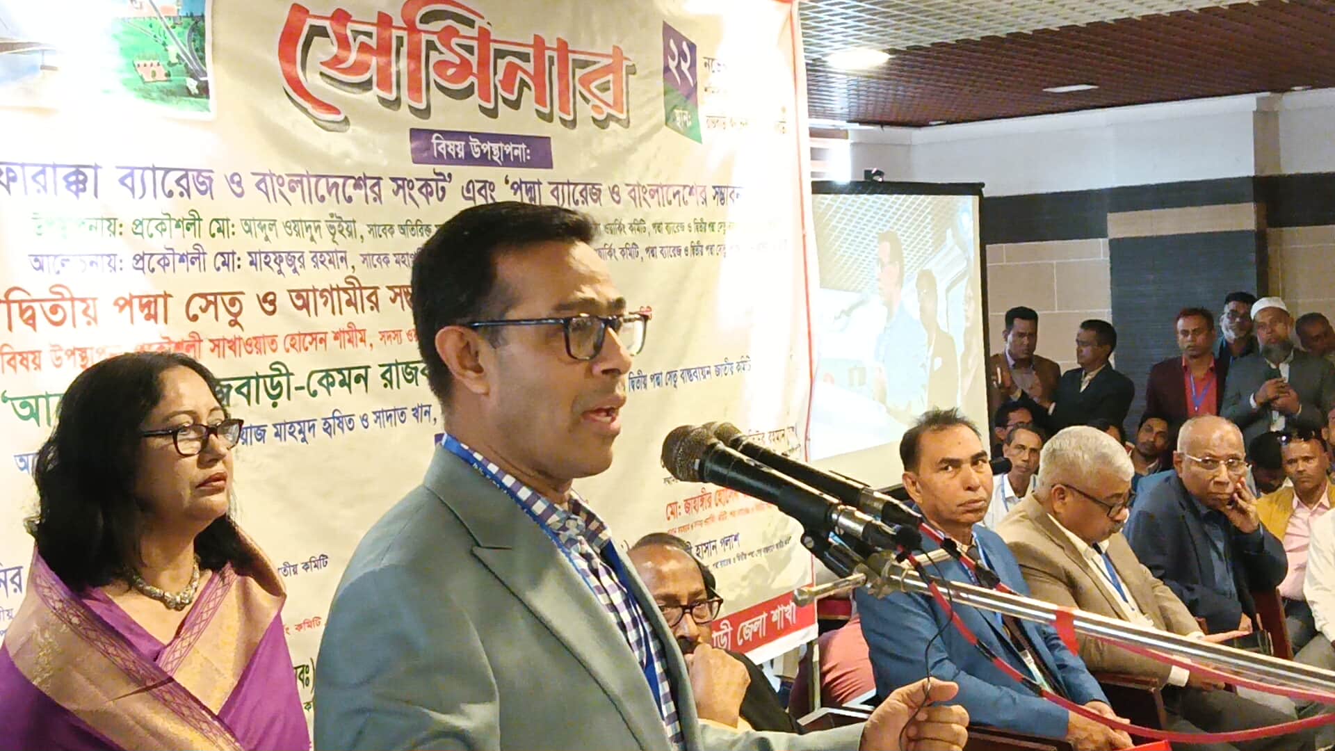 জাহাঙ্গীর হোসেন জালালের সভাপতিত্বে বক্তব্য রাখেন, পদ্মা ব্যারেজ ও দ্বিতীয় পদ্মা সেতু বাস্তবায়ন জাতীয় ওয়ার্কিং কমিটির সদস্য প্রকৌশলী শাখওয়াত হোসেন শামীম, জাতীয় কমিটির উপদেষ্টা লেফটেন্যান্ট জেনারেল (অবঃ) এস এম মতিউর রহমান, সাবেক রাষ্ট্রদূত ও জাতীয় কমিটির সদস্য খন্দকার আব্দুস সাত্তার, জাতীয় কমিটির সদস্য ব্রিগেডিয়ার জেনারেল (অবঃ) মোহাম্মদ মোহসীন, সাংবাদিক মেহেদী হাসান পলাশ, জাতীয় কমিটির সদস্য অর্ণব নেওয়াজ মাহমুদ, সাদাত খান প্রমূখ।