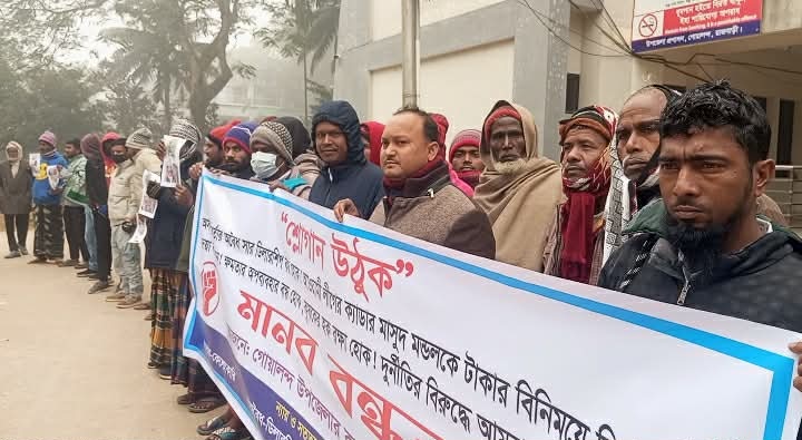 “ন্যায় ও শততার জয় হোক”- স্লোগানে গোয়ালন্দ উপজেলায় অবৈধ সার ডিলারশিপ বন্ধ হোক। আওয়ামী লীগের ক্যাডার মাসুদ মন্ডলকে টাকার বিনিময়ে ডিলারশিপ দেয়া বন্ধ করুন! ক্ষমতার অপব্যবহার বন্ধ হোক। দুর্নীতির বিরুদ্ধে আমরা রুখে দাঁড়িয়েছি স্লোগান নিয়ে মানববন্ধন অনুষ্ঠিত হয়। সার কেলেংকারি, অবৈধ ডিলারশিপ বাতিল, দুর্নীতি বন্ধ, কৃষক রক্ষা ইত্যাদি স্লোগান সম্বলিত ব্যানার ও প্লাকার্ড নিয়ে প্রায় শতাধিক কৃষক এ মানববন্ধনে অংশ নেন।