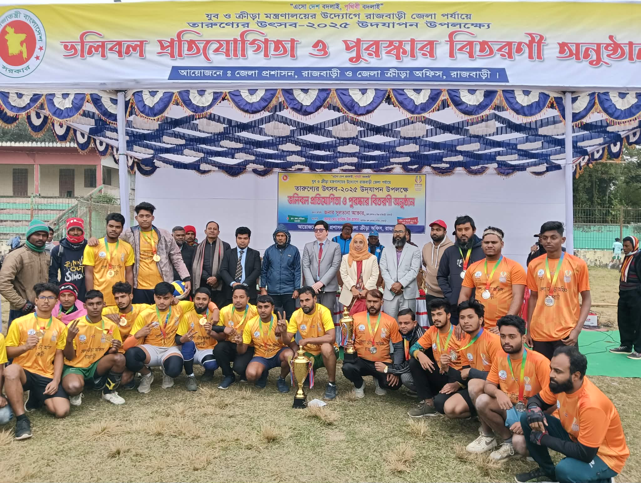 সুজন কুমার বিষ্ণু, রাজবাড়ীঃ ‘এসো দেশ বদলায়, পৃথিবী বদলাই’ এই প্রতিপাদ্য নিয়ে যুব ও ক্রীড়া মন্ত্রণালয়ের উদ্যোগে তারুণ্যের উৎসব -২০২৫ উদযাপন উপলক্ষে রাজবাড়ী জেলা পর্যায়ে ভলিবল প্রতিযোগিতা ও পুরষ্কার বিতরণ অনুষ্ঠিত হয়েছে।