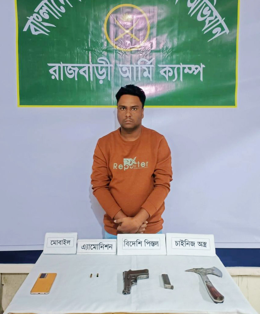 রাজবাড়ীতে বিদেশী পিস্তল ও গুলিসহ মাদক ব্যবসায়ী গ্রেপ্তার