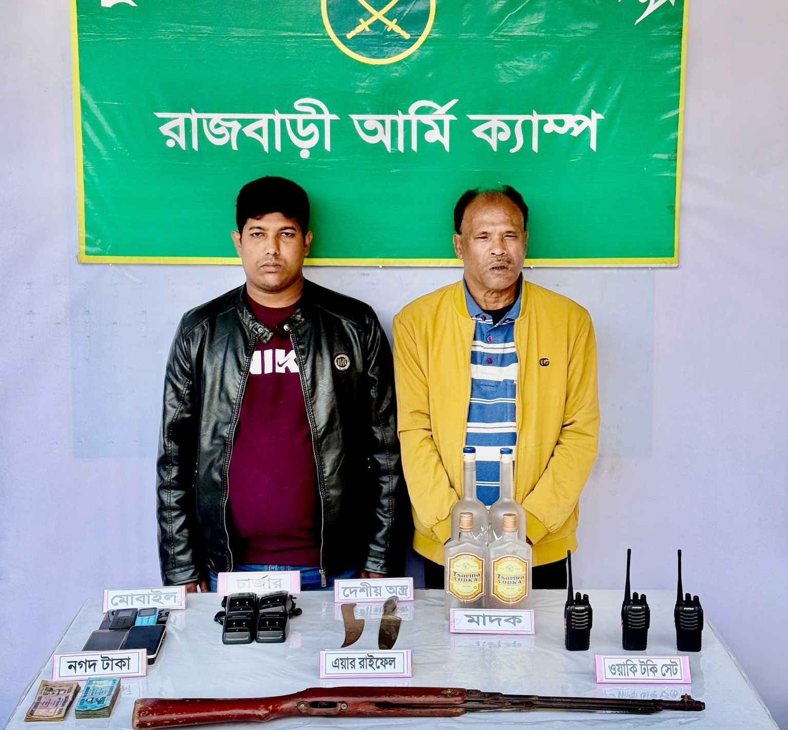 গ্রেপ্তারকৃত বিএনপি নেতা খোন্দকার মশিউল আজম চুন্নু (৫৫) বালিয়াকান্দি উপজেলা বিএনপির সাবেক সাধারণ সম্পাদক ও জেলা বিএনপির আহ্বায়ক কমিটির অন্যতম সদস্য। এছাড়া তিনি বালিয়াকান্দি সদর ইউনিয়ন পরিষদের সাবেক চেয়ারম্যান এবং স্থানীয় মৃত খোন্দকার আব্দুর রশিদ এর ছেলে। তাঁর সহযোগী সদর উপজেলার শেখ পাড়ার রফিক শেখের ছেলে মো. রিদয় শেখ ওরফে পাপ্পু (৩০)। এ সময় তাদের কাছ থেকে একটি দেশি বন্দুক, দুইটি চাকু, তিনটি ওয়াকি-টকি, ৮টি মোবাইল ফোন, ৪টি ওয়াকি-টকির চার্জার, এক বোতল মদ, তিনটি মদের খালি বোতল ও নগদ ৩৮ হাজার টাকা জব্দ করা হয়।