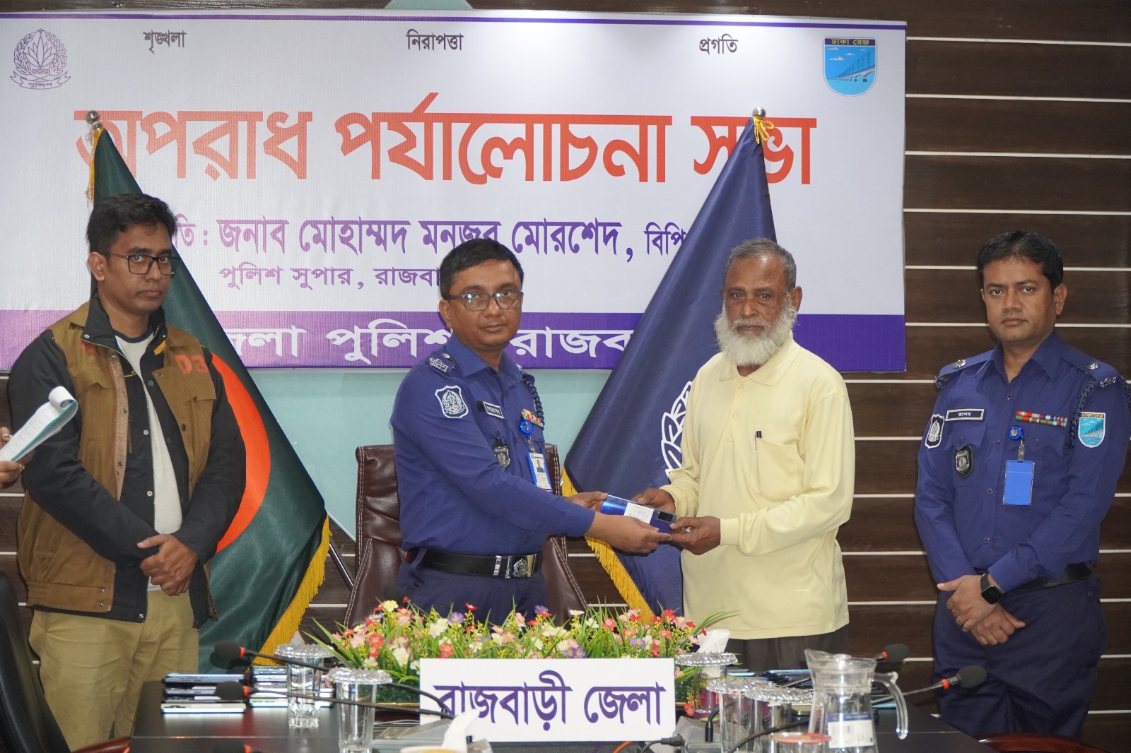 এ সময় রাজবাড়ীর অতিরিক্ত পুলিশ সুপার (প্রশাসন ও অর্থ) তাপস কুমার পাল, অতিরিক্ত পুলিশ সুপার (সদর সার্কেল) মোহাম্মদ শাহিদুল ইসলাম সহ জেলা পুলিশের উর্ধ্বতন কর্মকর্তাগণ উপস্থিত ছিলেন।