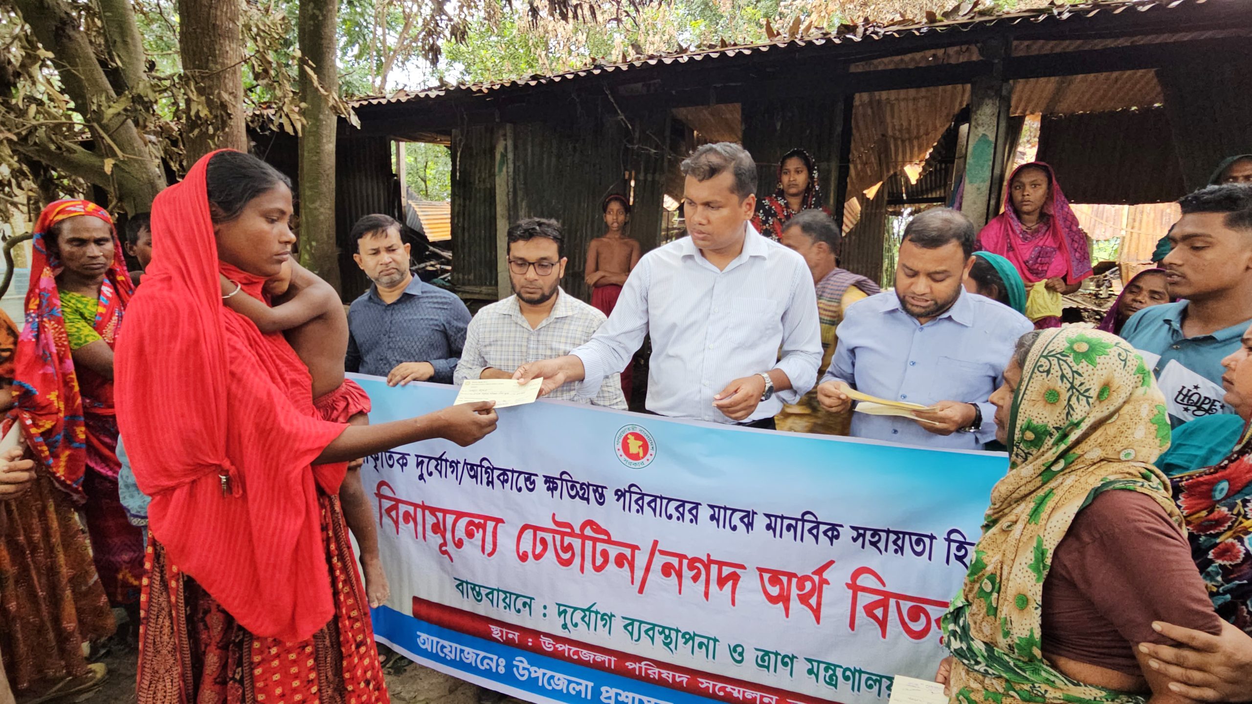 ইউএনও নাহিদুর রহমান বলেন, গত ২৯ সেপ্টেম্বর দিবাগত রাত তিনটার দিকে আশ্রয় কেন্দ্রে হঠাৎ আগুনে পুড়ে ১০ পরিবার নিঃস্ব হয়ে যায়। আমরা তাৎক্ষণিকভাবে এসব পরিবারের মাঝে শুকনা খাবার পৌছে দিয়েছি। আজকে দুর্যোগ ও ত্রাণ মন্ত্রণালয়ের সহযোগিতায় ১০টি পরিবারের মাঝে সাড়ে ৭ হাজার টাকা করে ১০টি চেক প্রত্যেক পরিবারের হাতে তুলে দিয়েছি। এটা দিয়ে তাদের জরুরি ভিত্তিতে যেটা প্রয়োজন সেটা কিছুটা হলেও মেটাতে পারবেন।