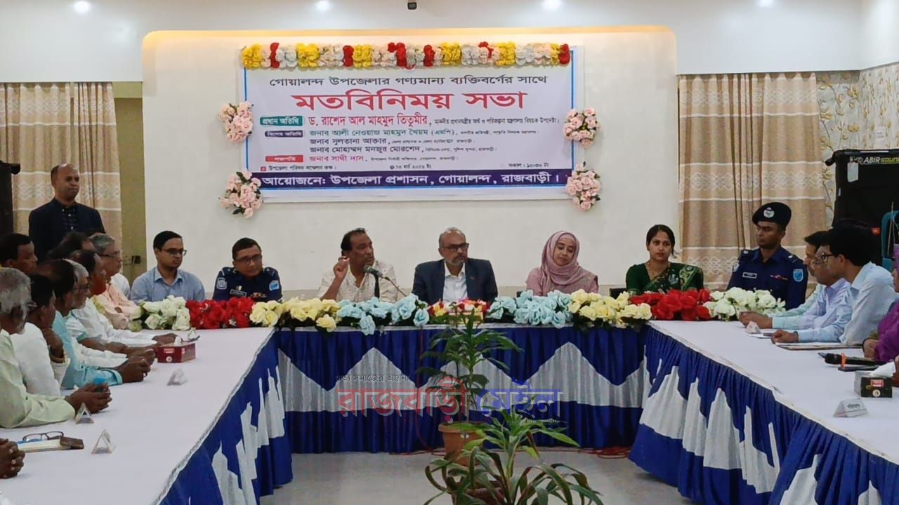 শুক্রবার (১৩ মার্চ) বেলা সাড়ে ১১টায় গোয়ালন্দ উপজেলা পরিষদ মিলনায়তনে উপজেলার গণ্যমান্য ব্যক্তিবর্গের সাথে মতবিনিময় সভার আয়োজন করা হয়। উপজেলা নির্বাহী কর্মকর্তা (ইউএনও) সাথী দাসের সভাপতিত্বে আয়োজিত মতবিনিময় অনুষ্ঠানে প্রধান অতিথি হিসেবে উপস্থিত ছিলেন মাননীয় প্রধান মন্ত্রীর অর্থ ও পরিকল্পনা বিষয়ক উপদেষ্টা রাশেদ আল তিতুমীর।